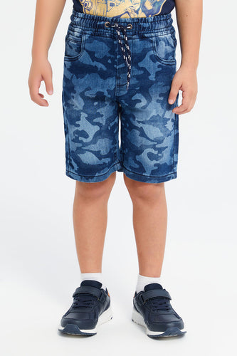 شورت مطبوع باللون الكحلي للأولاد الصغار