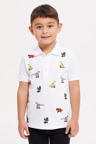 قميص بولو دينو مطرز للأولاد باللون الأبيض