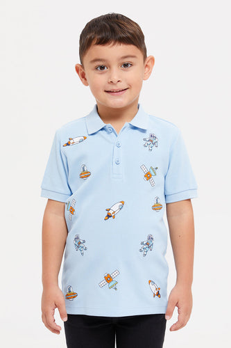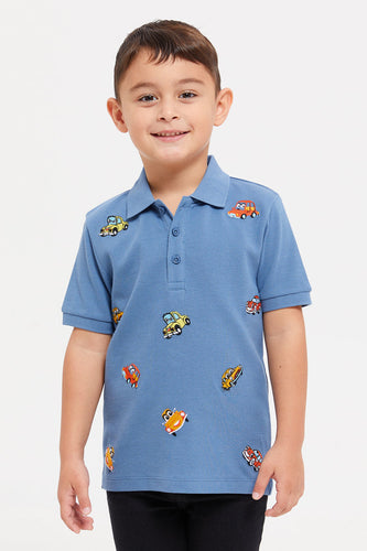 قميص بولو مطرز باللون الأزرق للأولاد