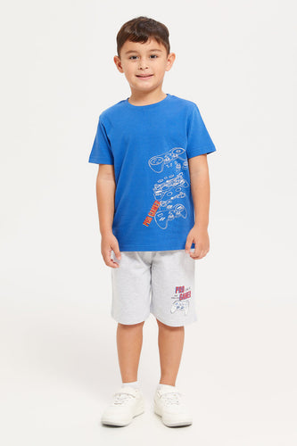 طقم بيجامة مطبوعة باللونين الأزرق والرمادي للأولاد (قطعتين)