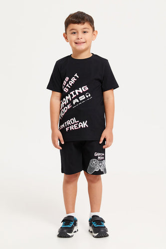 طقم بيجامة مطبوعة باللون الأسود للأولاد (قطعتين)