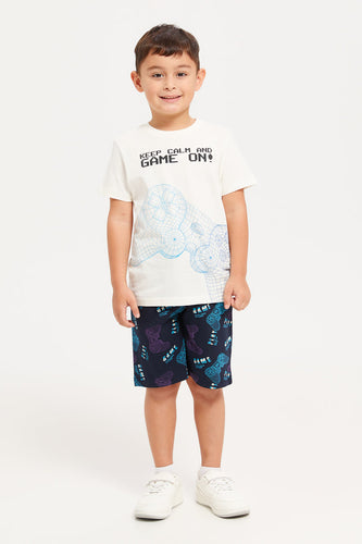 طقم بيجامة مطبوعة باللونين الأبيض والكحلي للأولاد (قطعتين)