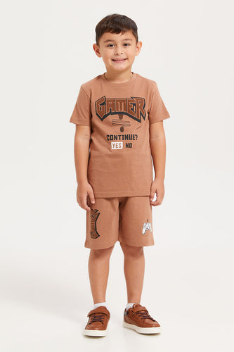 طقم بيجامة مطبوعة للأولاد باللون البني (قطعتين)
