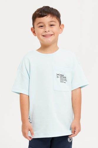 تي شيرت للأولاد مطبوع باللون الأزرق