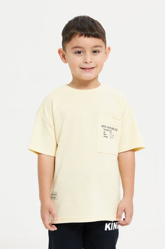تي شيرت للأولاد أصفر اللون بمقاس كبير وأكمام شريطية