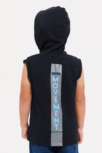 تي شيرت بقبعة باللون الأسود للأولاد الصغار