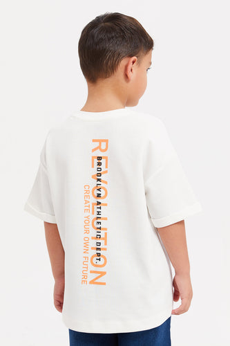 تي شيرت أبيض للأولاد مطبوع مقاس كبير