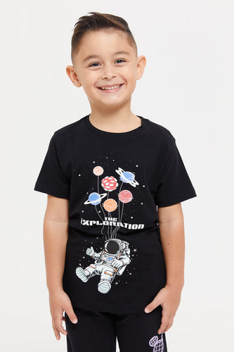 تي شيرت للأولاد برسومات الفضاء باللون الأسود