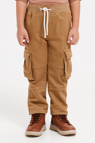 بنطال جينز رياضي بجيب كارغو باللون البيج للأولاد