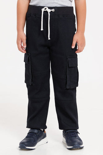 بنطال رياضي بجيب كارجو باللون الأسود للأولاد
