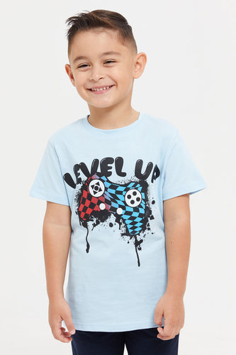 تي شيرت للأولاد بطبعة باللون الأزرق