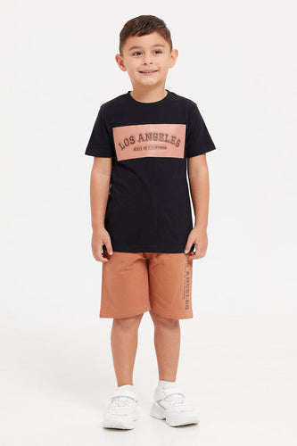 طقم (منقوش باللون الأسود للأولاد الصغار (قطعتين