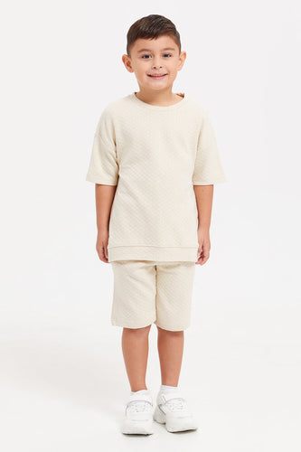 طقم تي شيرت كبير الحجم للأولاد من قماش جاكار إكرو (قطعتان)
