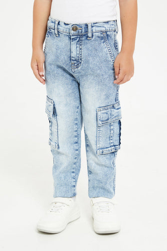 بنطلون جينز للاولاد لون ازرق باهت