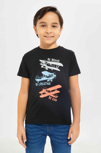 تي شيرت للأولاد برسوم طائرة باللون الأسود