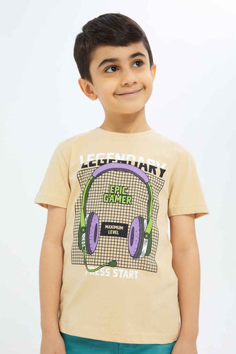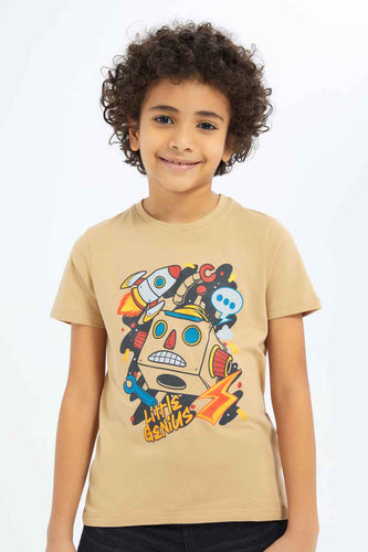 تيشيرت بطباعة باللون البيج للأولاد الصغار