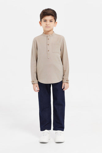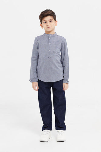 قميص ماندارين باللون الرمادي للأولاد الصغار