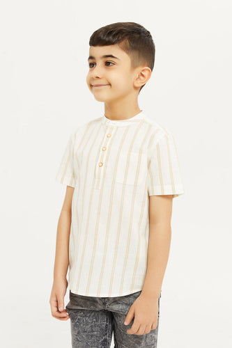 قميص كاجوال مخطط باللون العاجي للأولاد الصغار