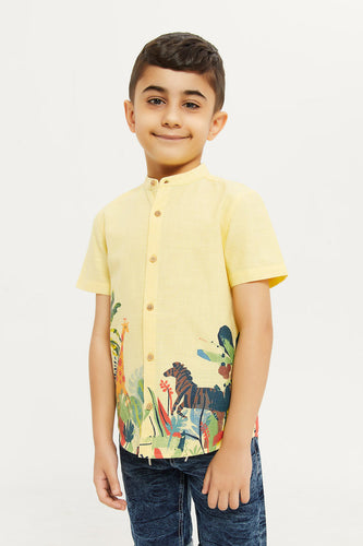 قميص كاجوال مطبوع باللون الأصفر للأولاد الصغار