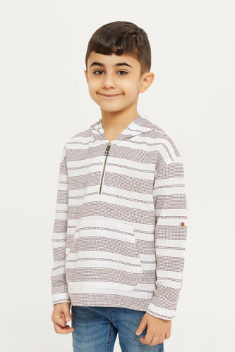قميص كاجوال بقبعة باللون الأبيض والبيج للأولاد الصغار