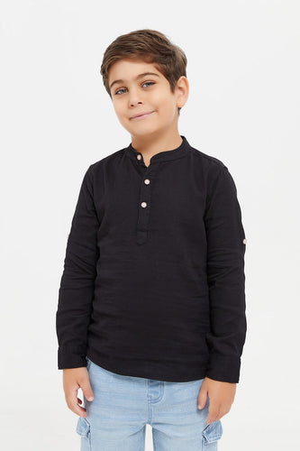 قميص ماندارين باللون الأسود للأولاد الصغار