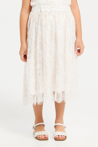تنورة منقوشة باللون الكريمي للبنات الصغار