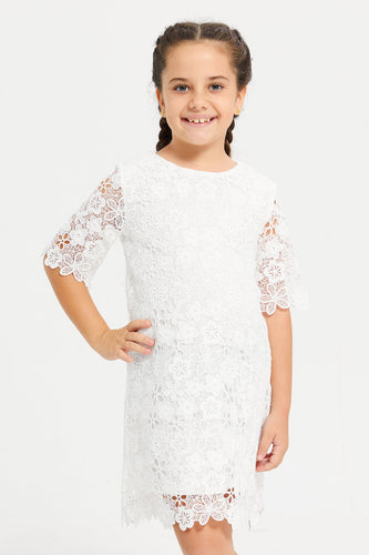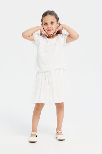 طقم بلوزة وتنورة باللون الأبيض للبنات الصغار (قطعتين)