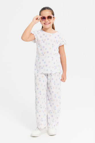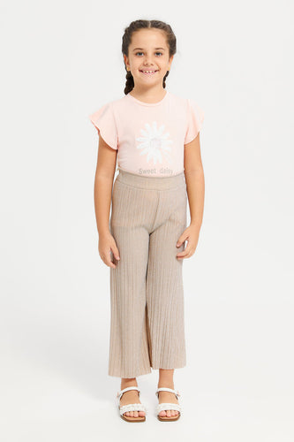 طقم كاجوال مطبوع باللون البيج للبنات الصغار (قطعتين)
