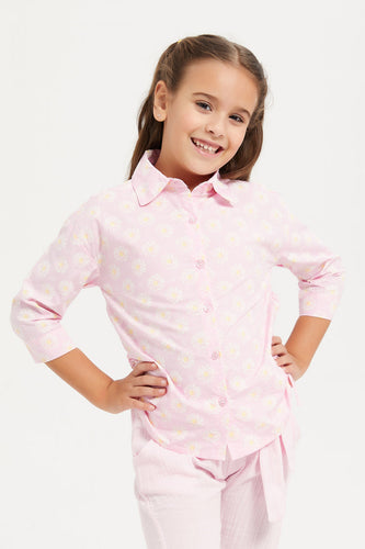 قميص مزين من الأجناب باللون الوردي للبنات الصغار