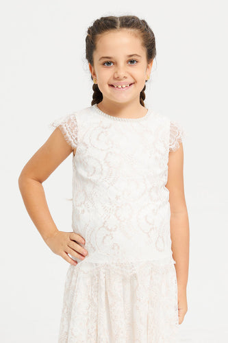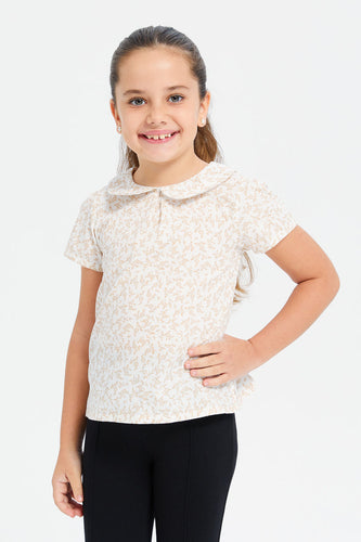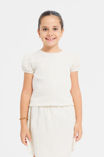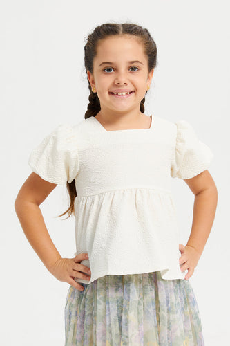 بلوزة بملمس بارز باللون الكريمي للبنات الصغار