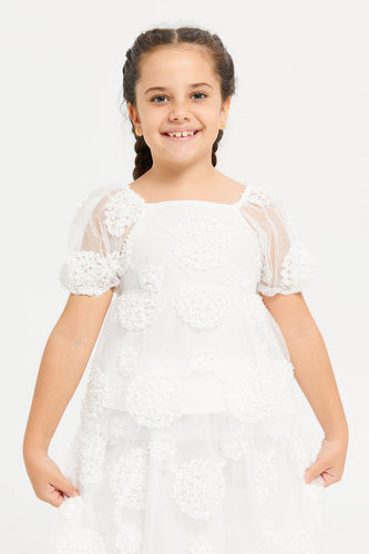بلوزة بملمس بارز باللون الأبيض للبنات الصغار