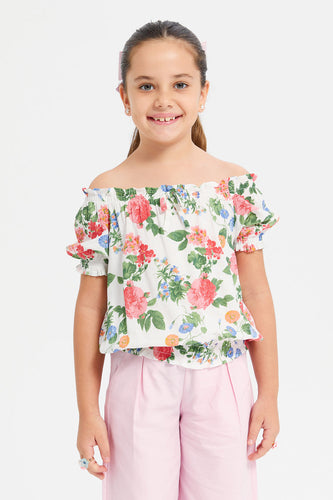بلوزة مطبوعة باللون الأبيض للبنات الصغار