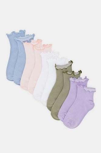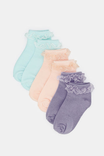 طقم جوارب مزينة بالدانتيل متعددة الألوان للبنات الصغار