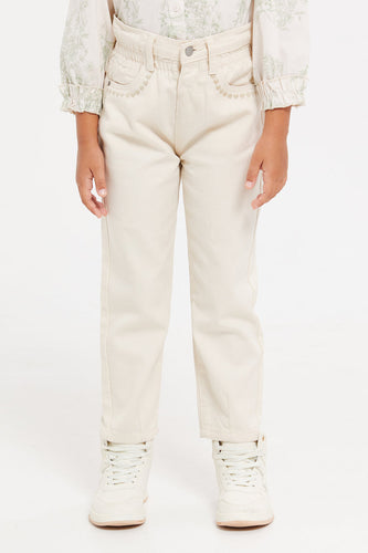 جينز للفتيات وتناسب الأمهات بلون البيج