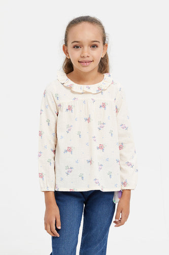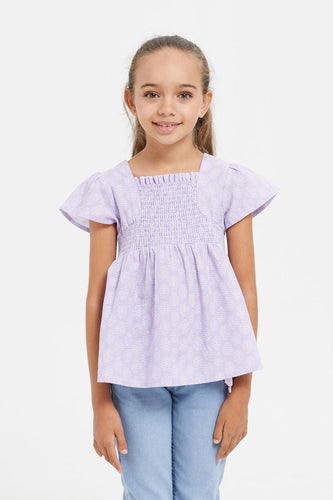 بلوزة قطن فليكس مطبوعة باللون الليلكي للفتيات