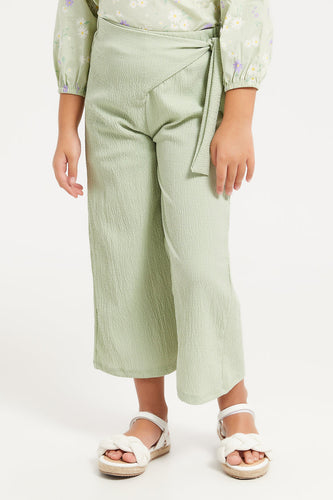 بنطلون أخضر مزخرف بأرجل واسعة للفتيات