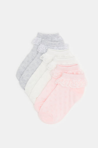 طقم جوارب مزين بالدانتيل متعدد الألوان للبنات الرضّع