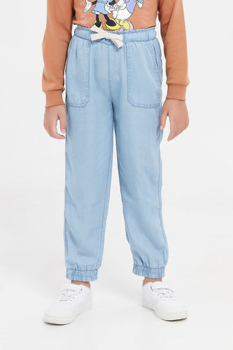 جوغرز واسع مطبوع باللون الأزرق للبنات الصغار