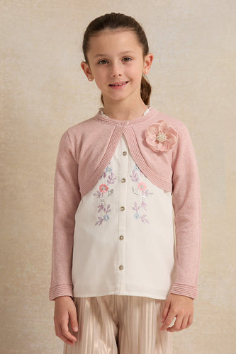 بوليرو لامع مزين بزهرة باللون الوردي للبنات الصغار