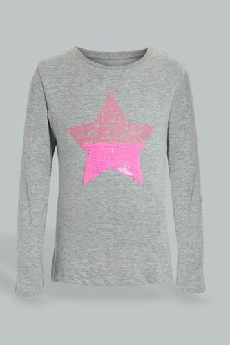 Grey Star Sequin T-Shirt تيشيرت رمادي مزين بشكل نجمة