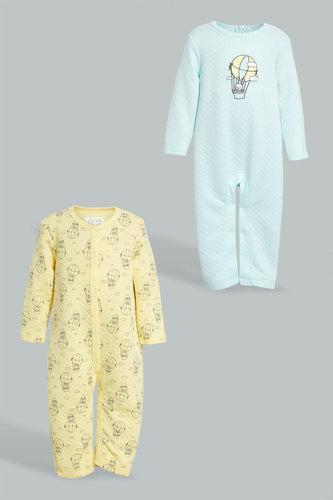 Mint/Yellow Balloon Quilted Romper Set (2 Piece) طقم رومبير باللون النعناعي والأصفر (قطعتين)