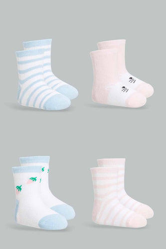 طقم جوارب بطول الكاحل بألوان متعددة للبنات الرضَع (4× أزواج)