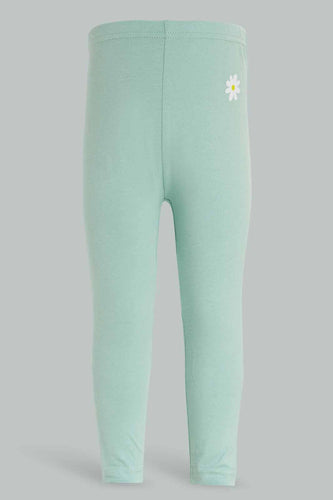 ليغينغز نعناعي مطرز للبنات الرضّع