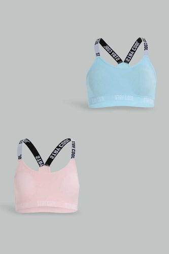 طقم صدرية مريحة مبطنة باللون الأزرق والوردي للبنات الكبار (قطعتين)
