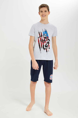 طقم بيجامة مطبوع باللون الأبيض و الكحلي للأولاد الكبار