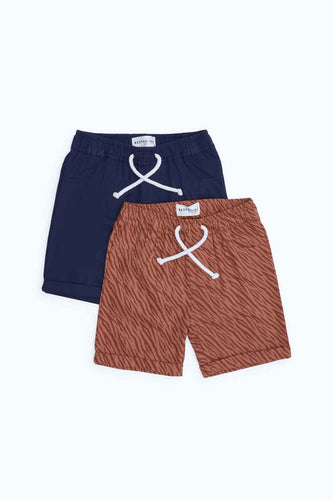 شورت بوبلين باللون الكحلي والنحاسي للأولاد الرضّع (قطعتين)
