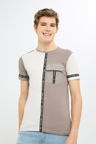 تيشيرت مزين باللون الرمادي والأبيض للأولاد الكبار