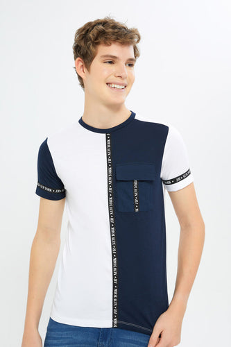 تيشيرت مطبوع باللون الكحلي و الأبيض للأولاد الكبار