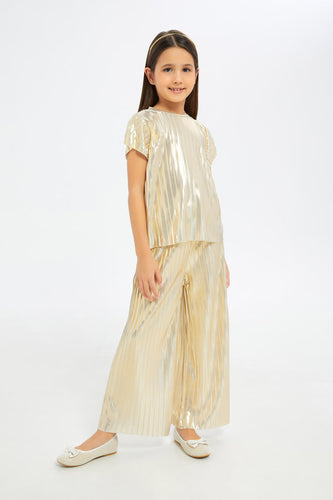 طقم باللون الذهبي للبنات الصغار (قطعتين)