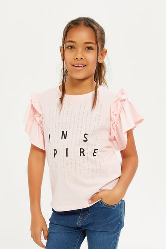 تيشيرت مزين باللون الوردي للبنات الصغار